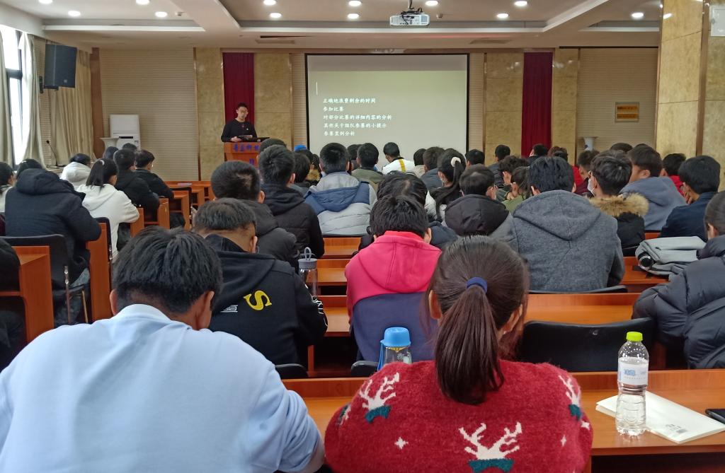 王宇豪主讲了《科创类比赛分析与参赛指南》,首先他带领与会同学认识在大学生活中正确利用时间的重要性,鼓励大家合理规划时间,树立正确的学习目标。接着他强调了参加比赛在提升个人能力、提高学习积极性、增强沟通能力的重要性。同时介绍了学校积极推进的各项比赛,包括创新类比赛和知识类比赛名称、报名时间、比赛内容等信息。最后通过参赛案例分析指出了比赛注意事项,包括团队协作、分工安排及如何制定团队计划等问题。